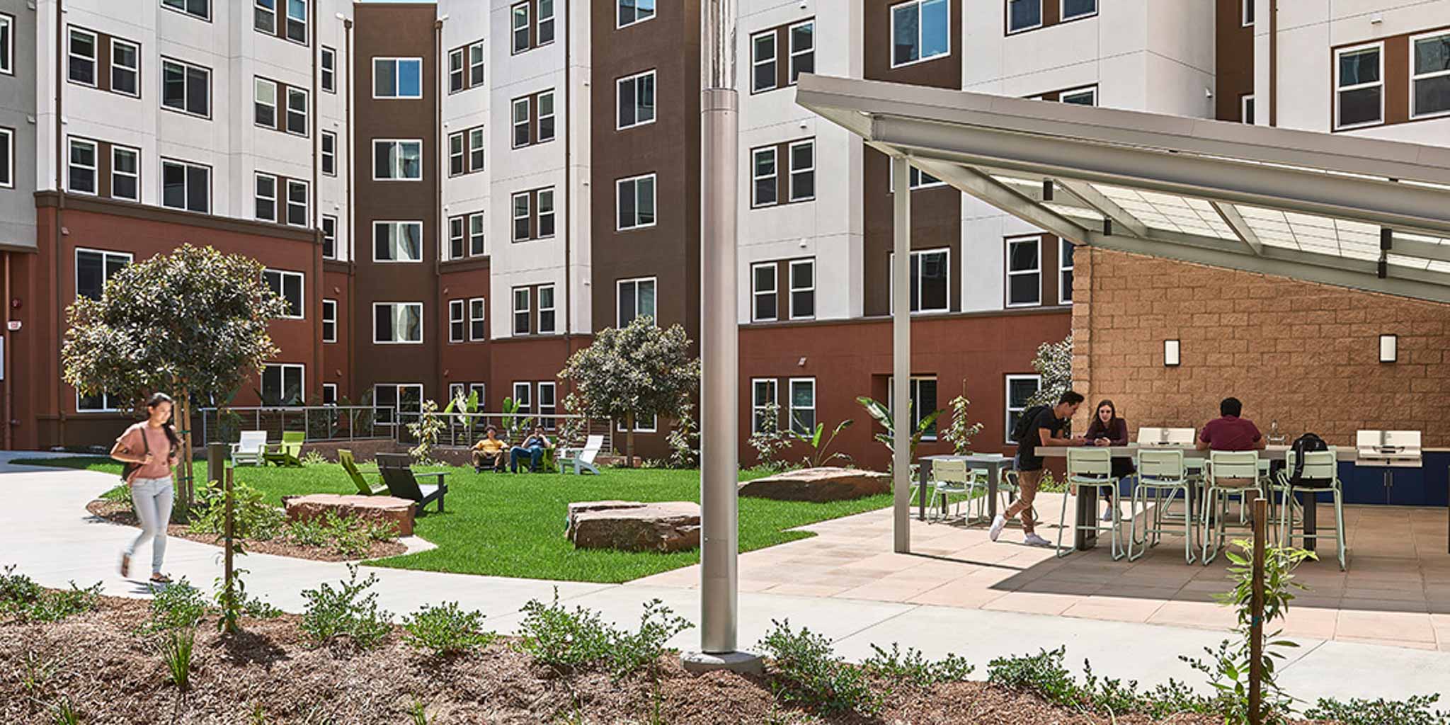 The University of California system has pledged to become carbon neutral by 2025, becoming the first major university system to accomplish this achievement. As a longtime partner of the UC system, American Campus Communities is committed to helping them meet this goal. Over the last 20 years, ACC has partnered with University of California, Irvine to master plan, develop and operate their East Campus, which resulted in six phases of on-campus communities with more than 7,600 beds. Four of these developments are LEED-certified or tracking LEED certification.The latest is Plaza Verde II, which opened in fall 2023 and is tracking LEED Gold certification.