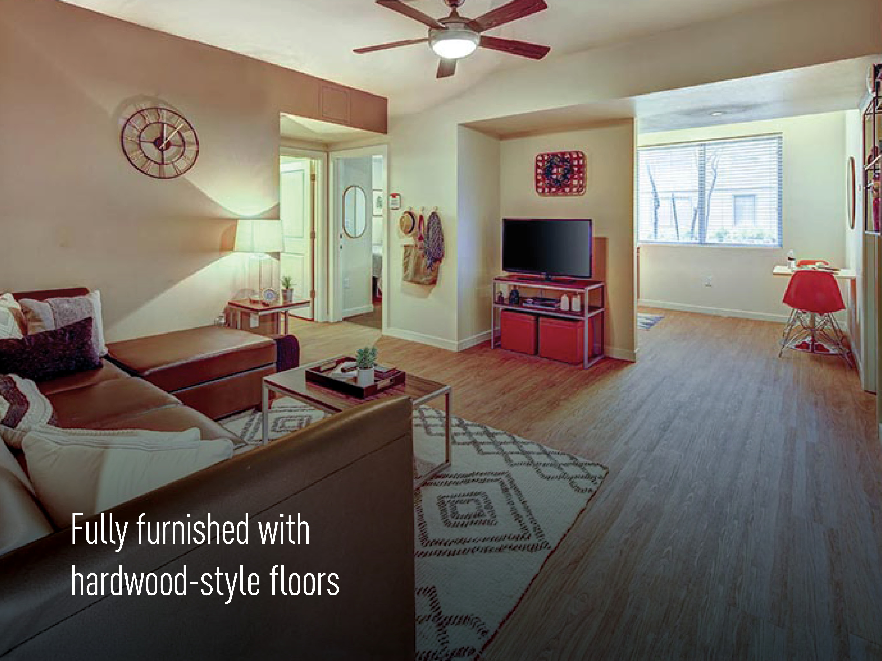 No moving truck needed! Nearly all ACC properties offer fully furnished units at no extra fee. And, our communities are technology enabled, helping your student stay connected to their coursework, friends and you.